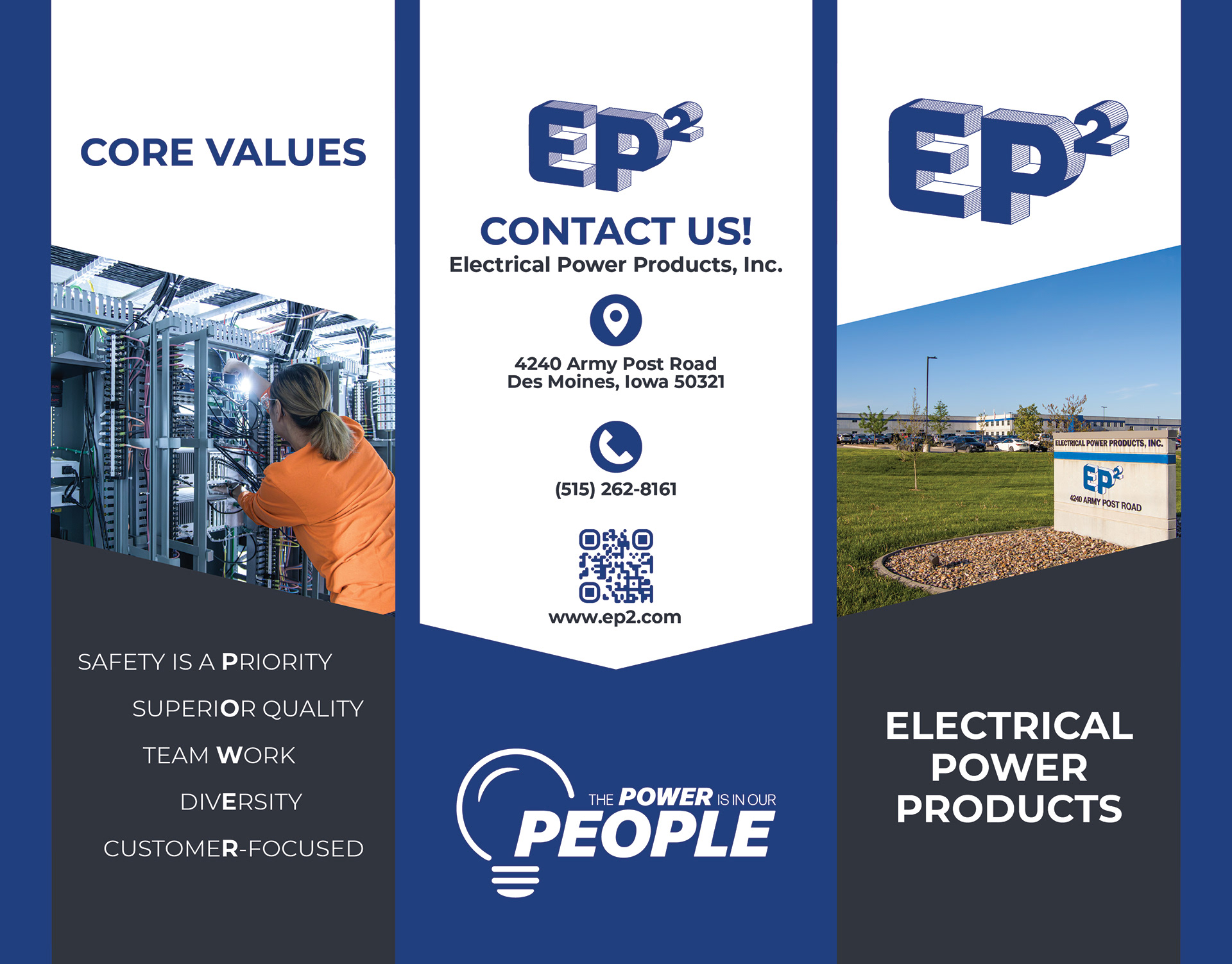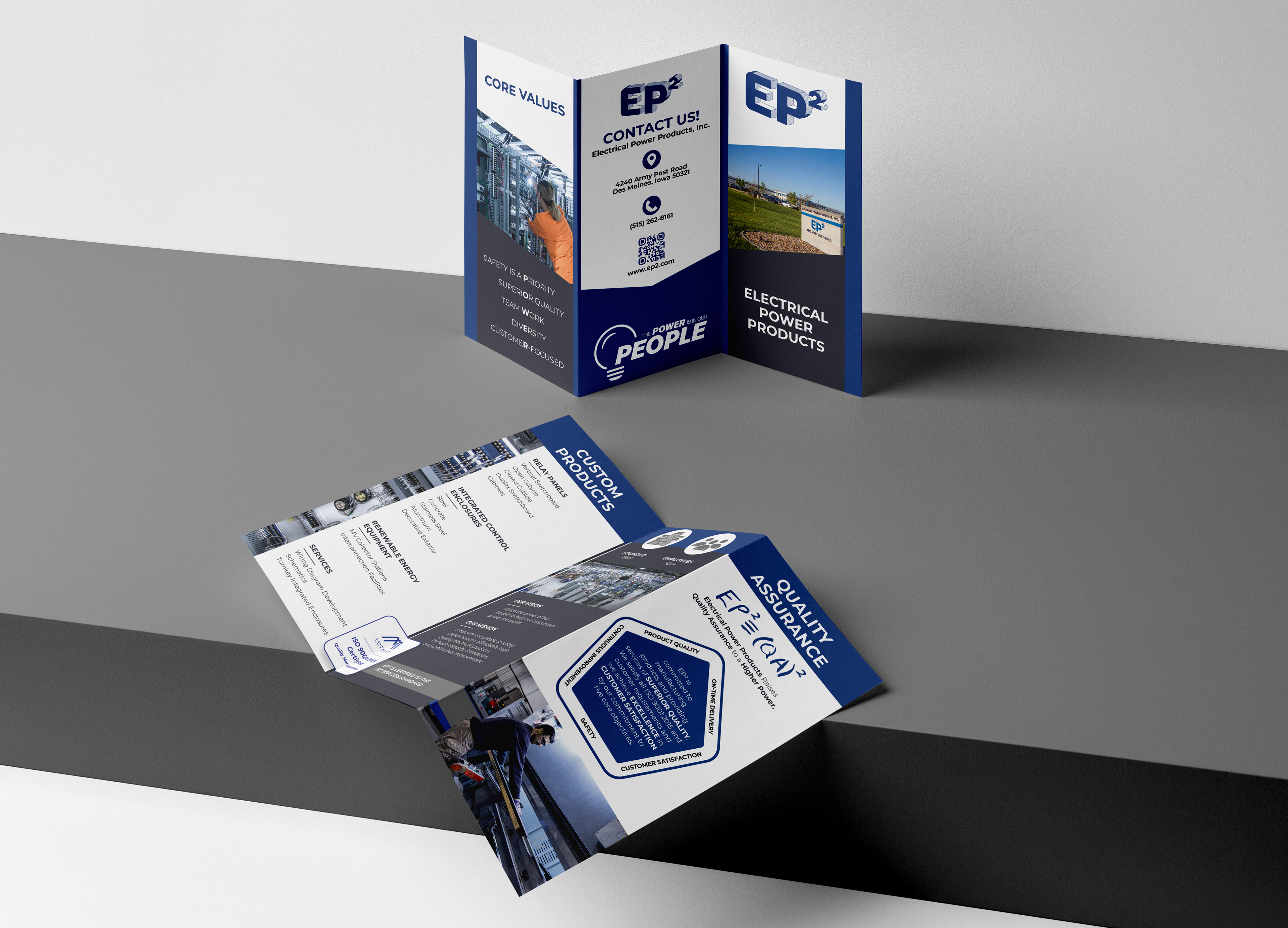 Electrical Power Products wanted a new brochure highlighting all of the services they provide and values they uphold. They tasked me in creating this fresh new print for their offices.